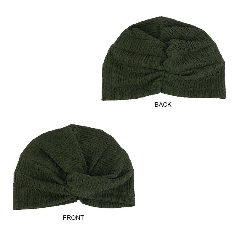 Experience effortless style and all-season comfort with this pleated twist knot turban chemo cap beanie you can wear every day.