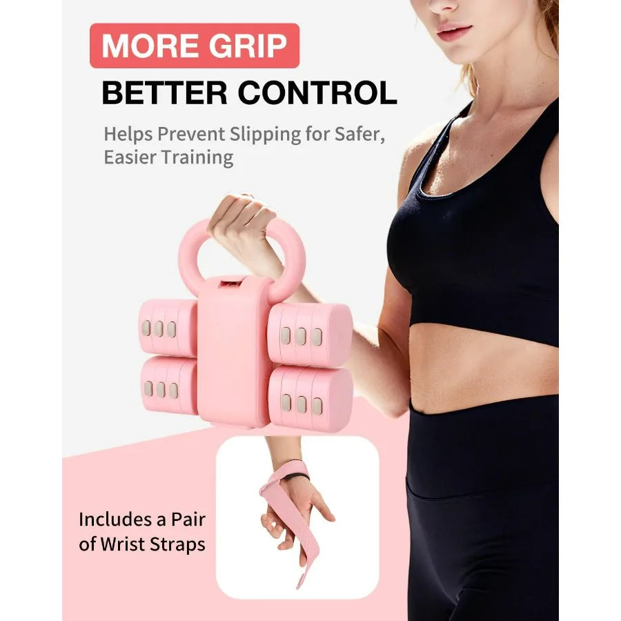 Adjustable Kettlebell Set With Wrist Straps 4-In-1 Free Weight Dumbbells