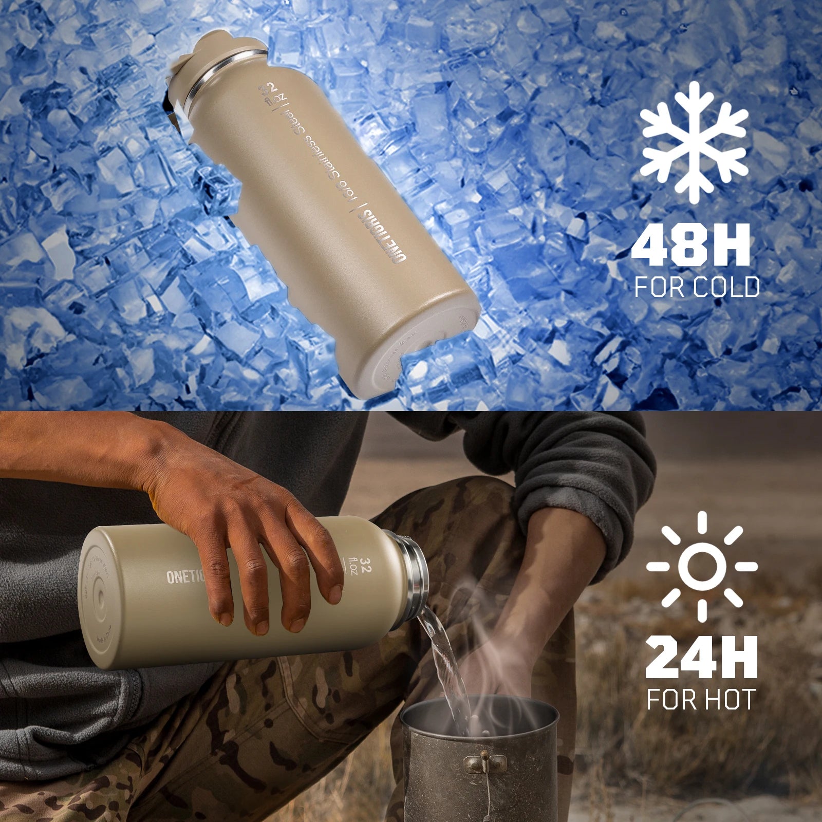 - Keep drinks at your ideal temperature with double-layered 304 stainless steel: about 24 hours hot and 48 hours cold for long hikes, commutes, or workouts.