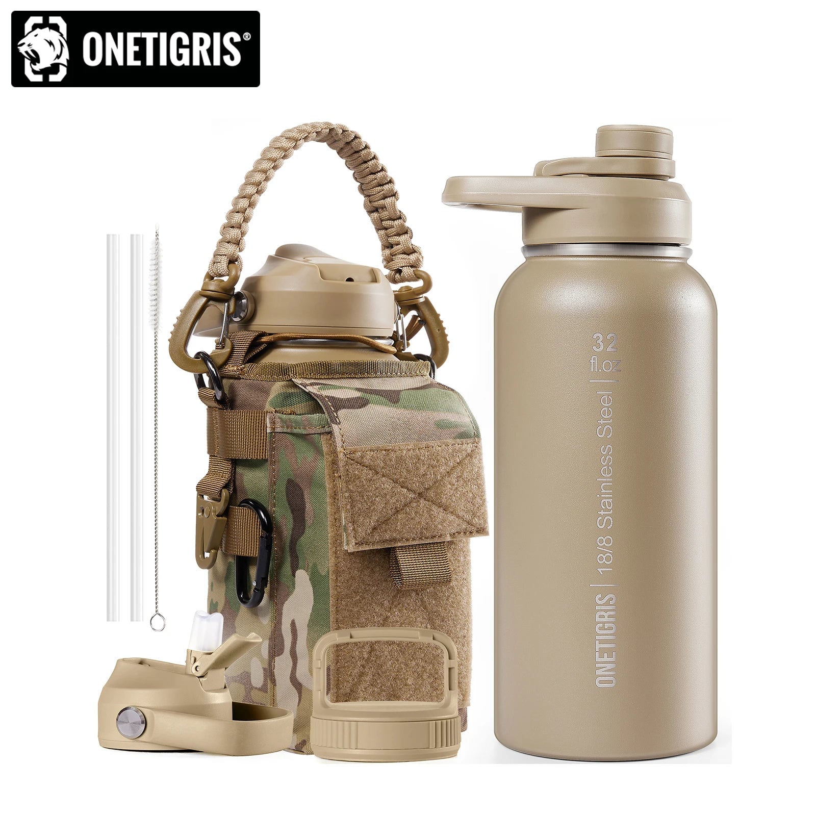 Stay hydrated on every adventure with the ONETIGRIS Insulated Tactical Stainless Steel Water Bottle with Straw.