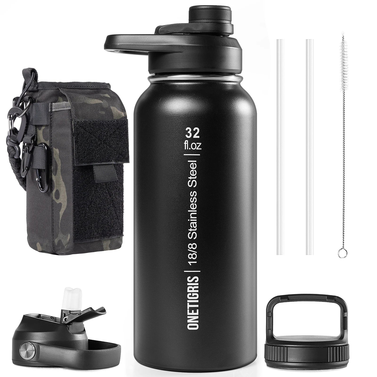 ONETIGRIS Insulated Tactical Stainless Steel Water Bottle With Straw